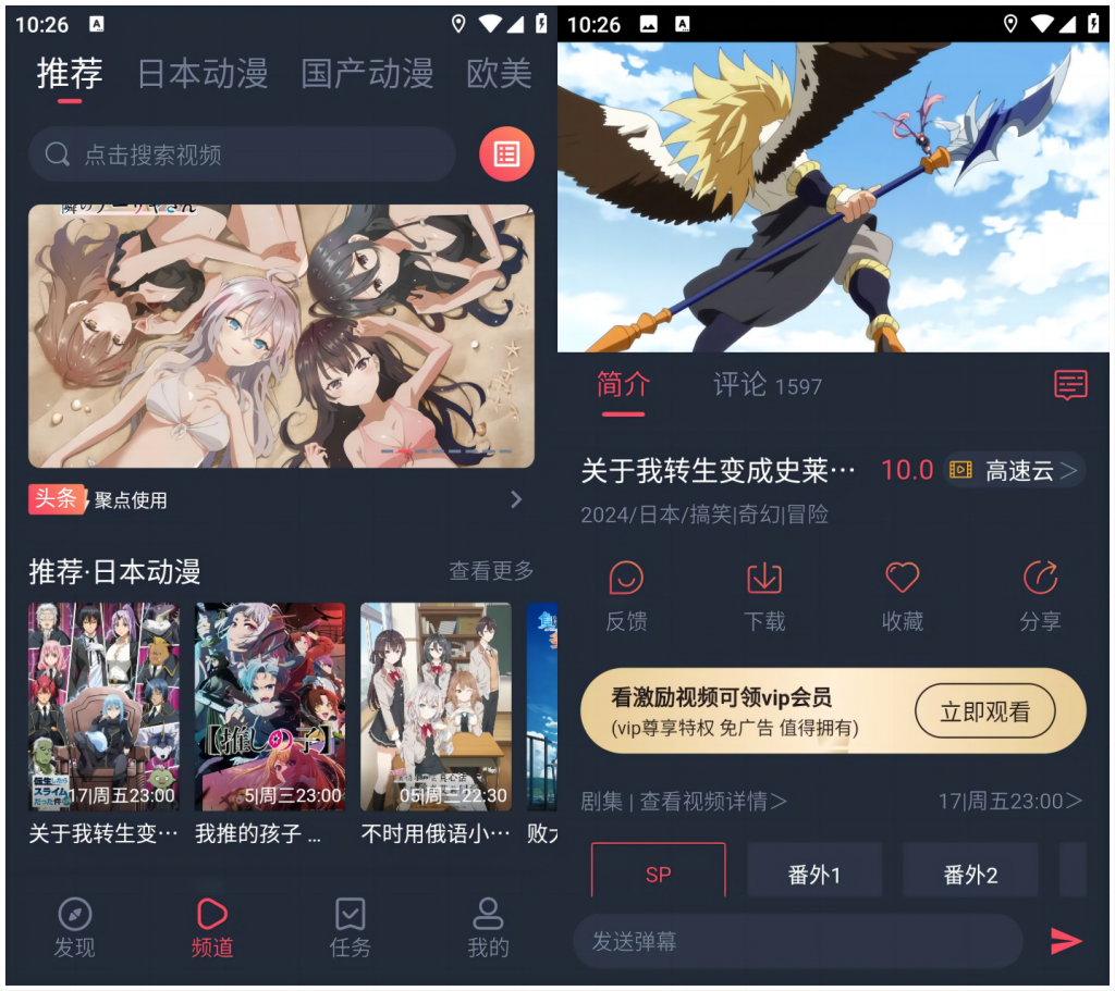 CliCli动漫是一款看动漫的神器,支持国漫和日漫,画质高清播放流畅,无需登录。漫源清晰不卡顿,是非常好的追番软件