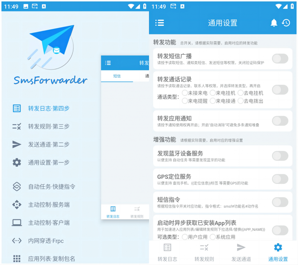 本软件是一款开源的短信转发工具,功能很多,有多个手机卡,不怕短信漏了。
