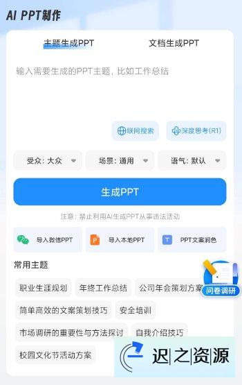 AiPPT制作师是一款智能的PPT生成工具,依托于DeepSeek R1等优秀大模型,为用户提供高质量的PPT。帮助用户在职场办公、生活学*等多个场景提高效率和辅助。