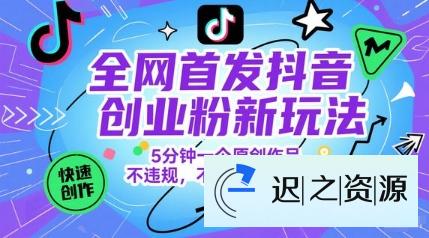 全网首发抖音创业粉新玩法,5分钟一个原创作品,不违规,不废号,流量好