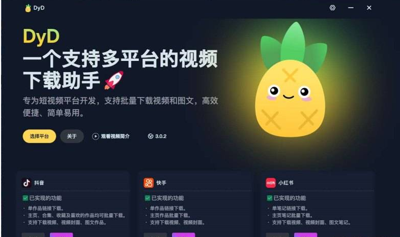 DyD是一款DyD 多平台批量无水印视频图集下载器,完全免费,支持抖音、快手、最感到意外的是还支持小红书的图文和视频下载,效果非常不错。使用方法很简单:打开抖音、快手或小红书,选择一个作者的主页或笔记,复制链接并粘贴到软件,点击下载即可。软件会自动解析视频和图文,速度很快,完全没有水印。