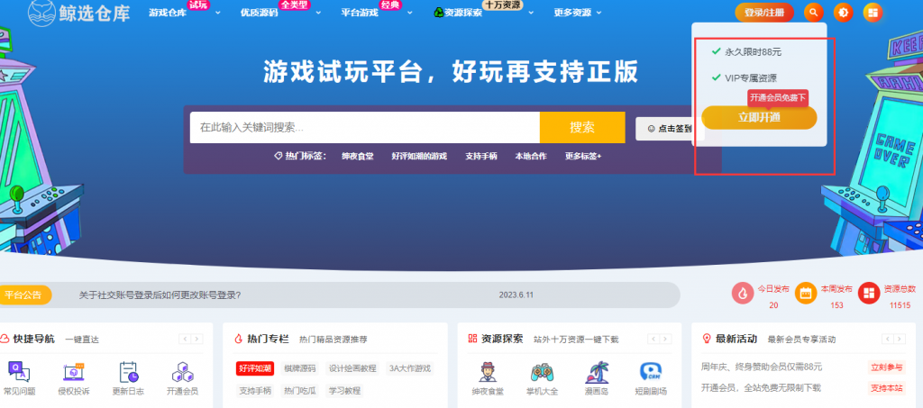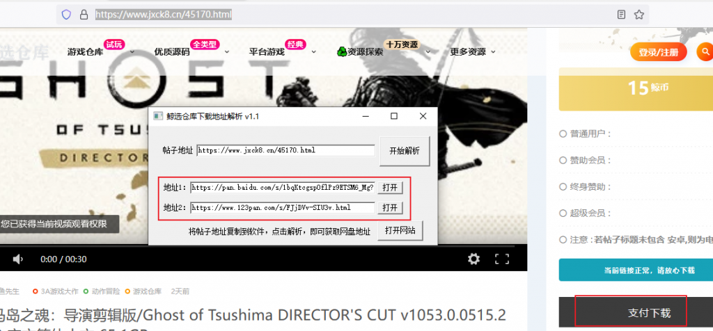 鲸选仓库是一个拥有各种游戏资源的网站,开通会员需要88。用该软件仅需输入帖子链接,自动返回下载地址~